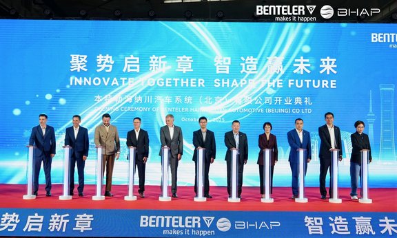 Beijing/Salzburg, October 23, 2025. The BENTELER Group has officially opened a new module plant in Beijing, China. The site is part of a joint venture with Chinese automotive supplier BHAP (Beijing Hainachuan Automotive Parts). Production has already started at the Beijing plant, and the two companies will provide chassis suspension modules for Beijing Benz.
